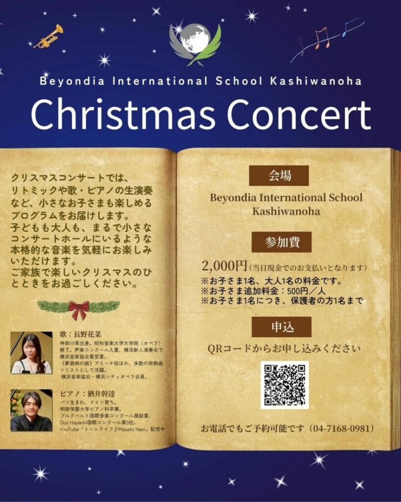 今年の冬、Beyondia International School Kashiwanohaでは特別なクリスマスコンサートを開催します。