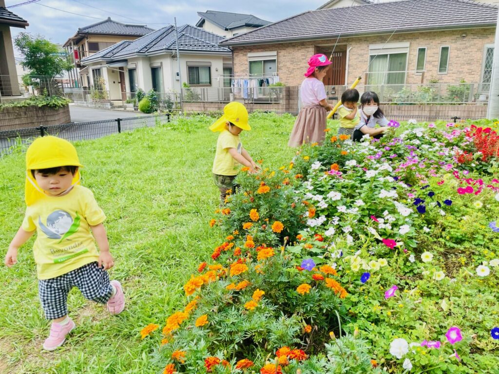 遊具を使って遊ぶことはもちろん、かくれんぼや鬼っごをしたり、綺麗なお花を観察したり・・・