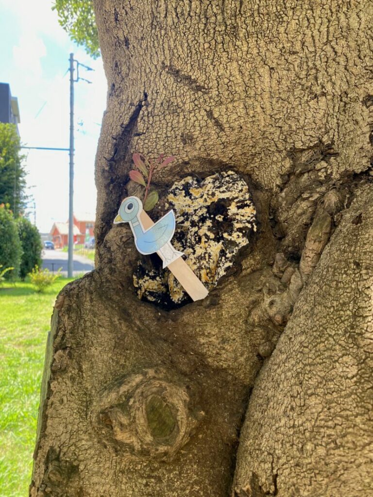 Teacherが植え込みや、木のくぼみなどに隠したPigeonをみんな一生懸命に探していました。
