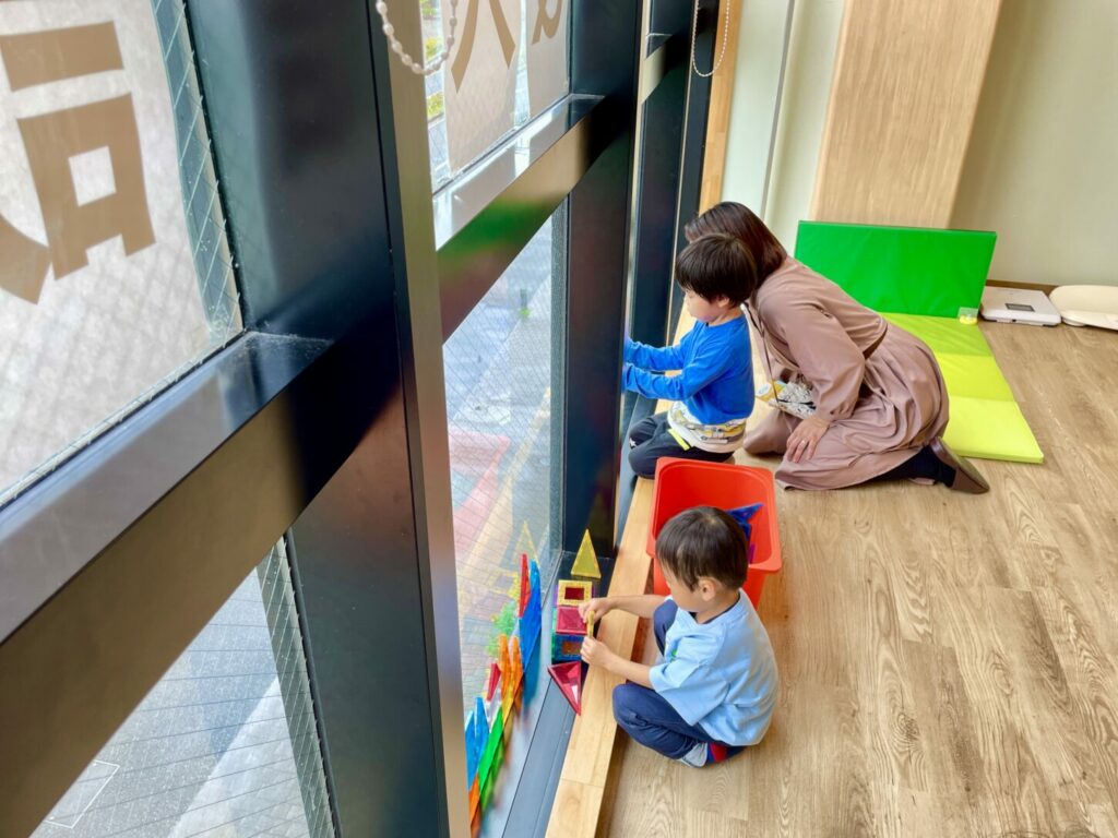 自由遊びのスペースでは、マグネットタイルやマグネットブロック、車、積み木などのさまざまなおもちゃで遊びました。アイスクリームカートコーナーも大人気で、ごっこ遊びを通して想像力を膨らませる楽しい体験ができました。