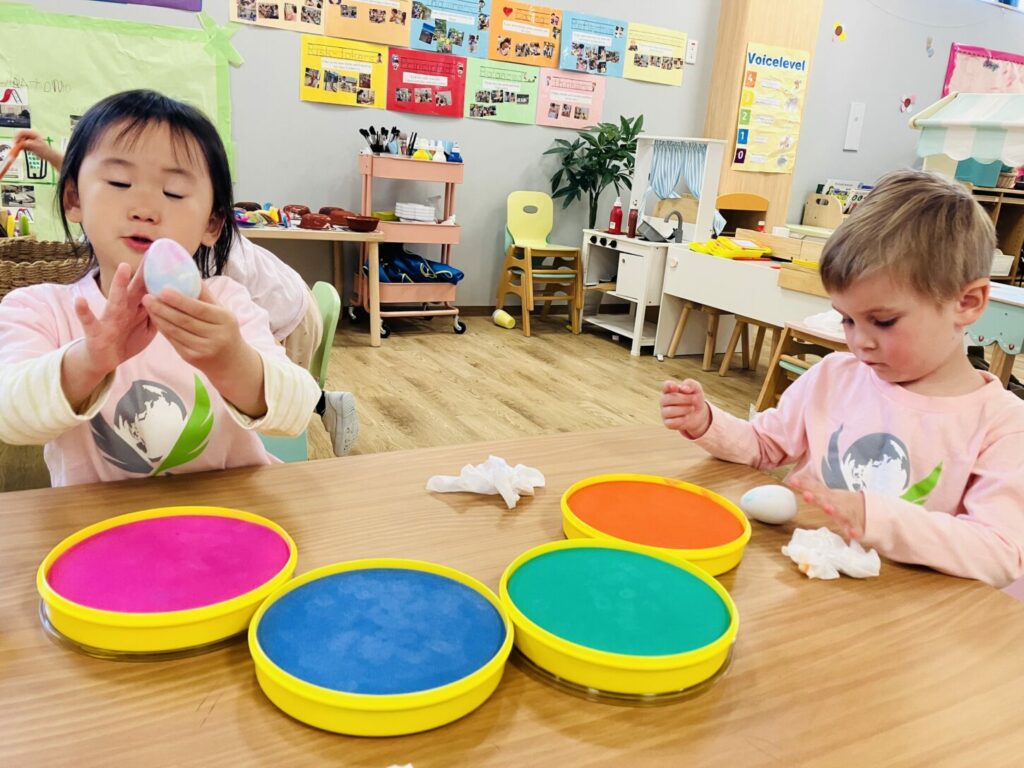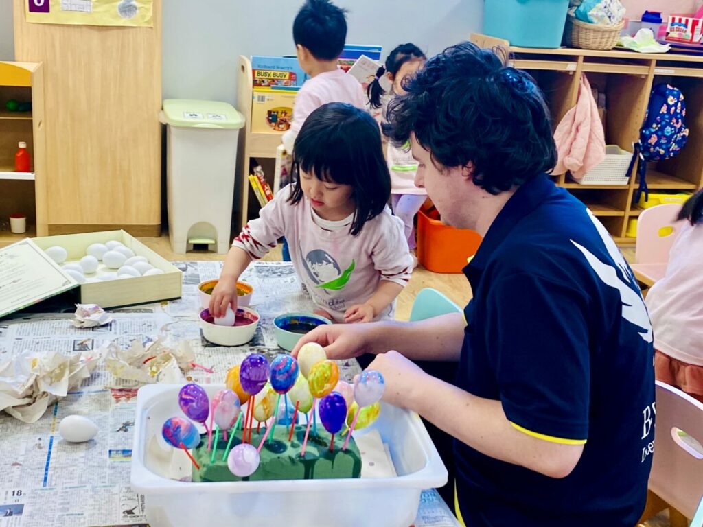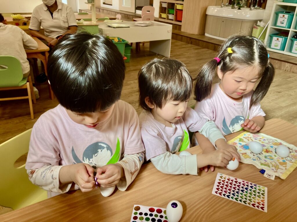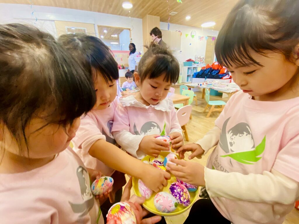 これらのイースターエッグ・デコレーション活動を通して、子どもたちは創造力、感覚の探究、自己表現を楽しみながら、思い出に残る楽しい時間を過ごすことができました。