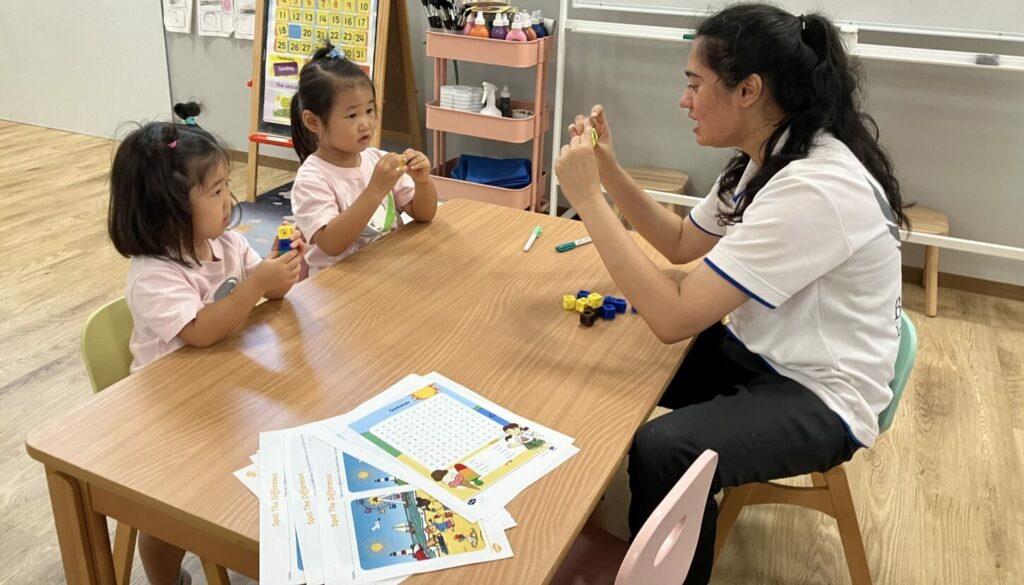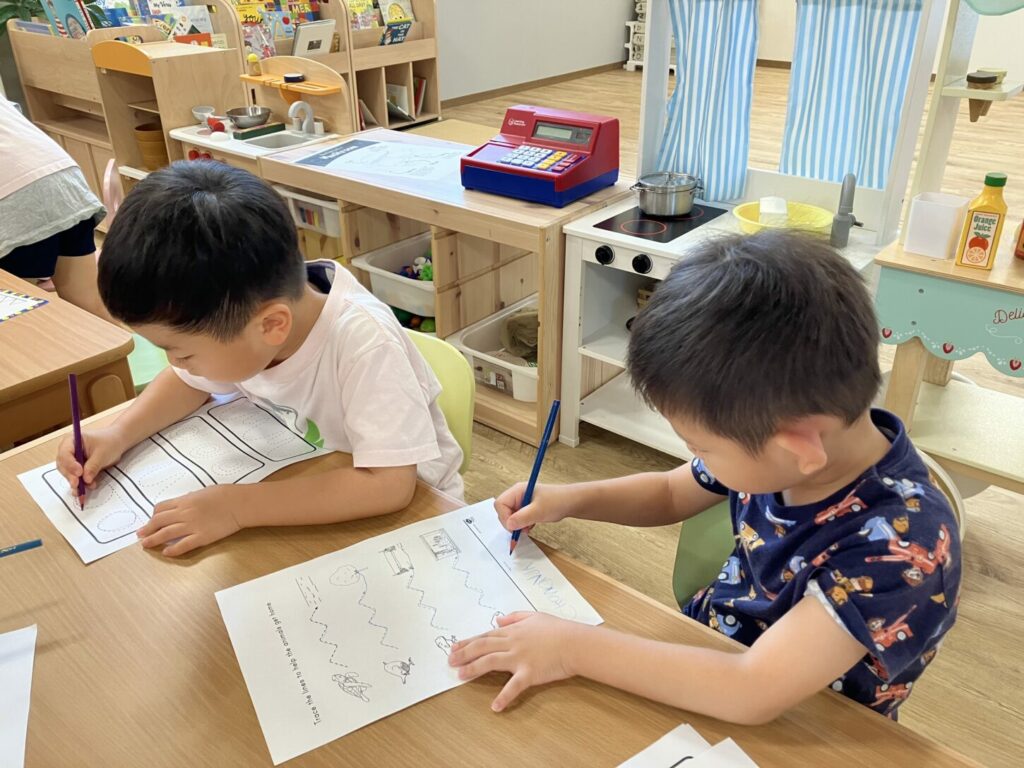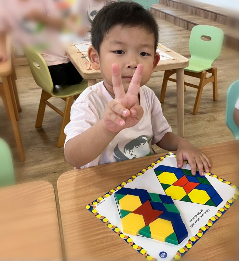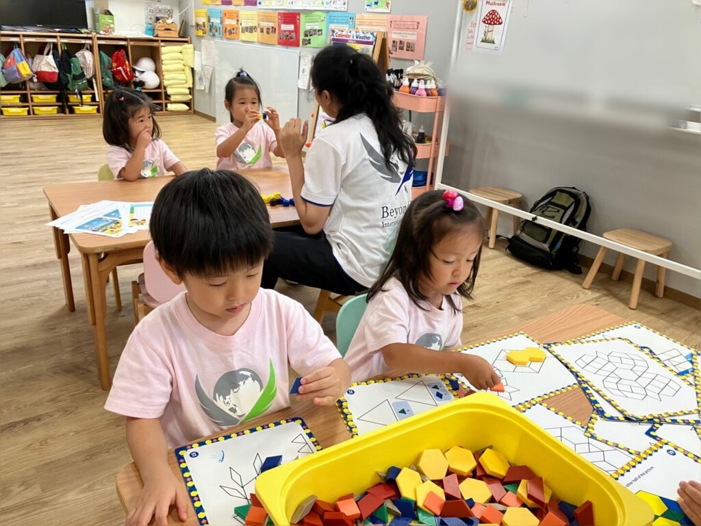 We kicked off the week by introducing three exciting stations. In the first station, the kids practiced advanced pencil control techniques, mastering the art of holding and moving their pencils with precision. At the second station, they dived into pattern-making using different shapes like hexagons and squares, enhancing their understanding of patterns and creativity. Finally, at the third station, the children had a blast in the math station, where they learned counting and addition using colorful counting cubes.