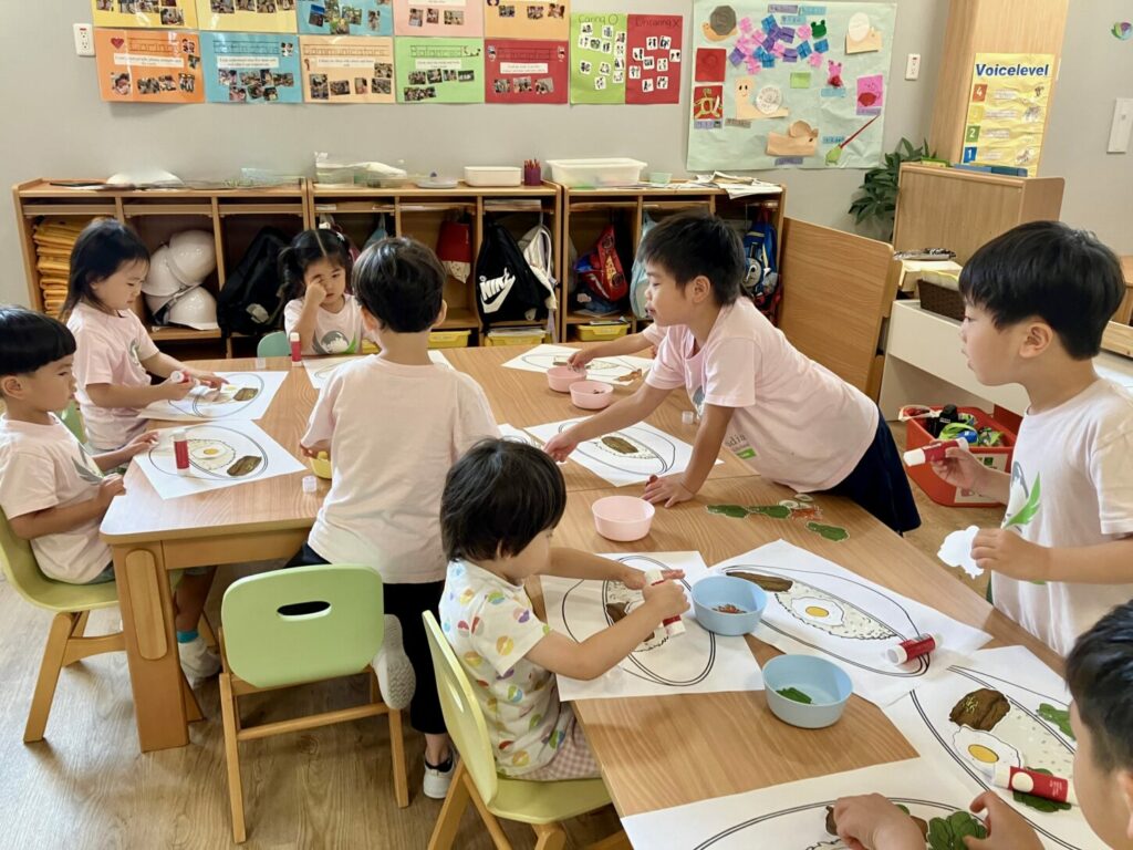 After discussing the ingredients used in Bibimbap, the children created their own version of the dish during craft time, choosing ingredients they liked to include. This activity gave them a chance to understand food culture while enjoying creative expression.