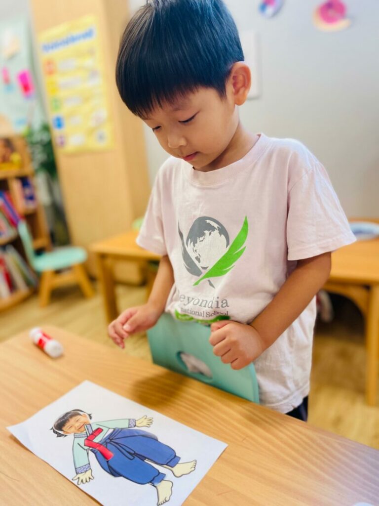 At Beyondia International School Kashiwanoha, our kindergarten students explored South Korea as part of our July country study. The goal was to help children learn about another culture through hands-on experiences, arts, crafts, music, and food.