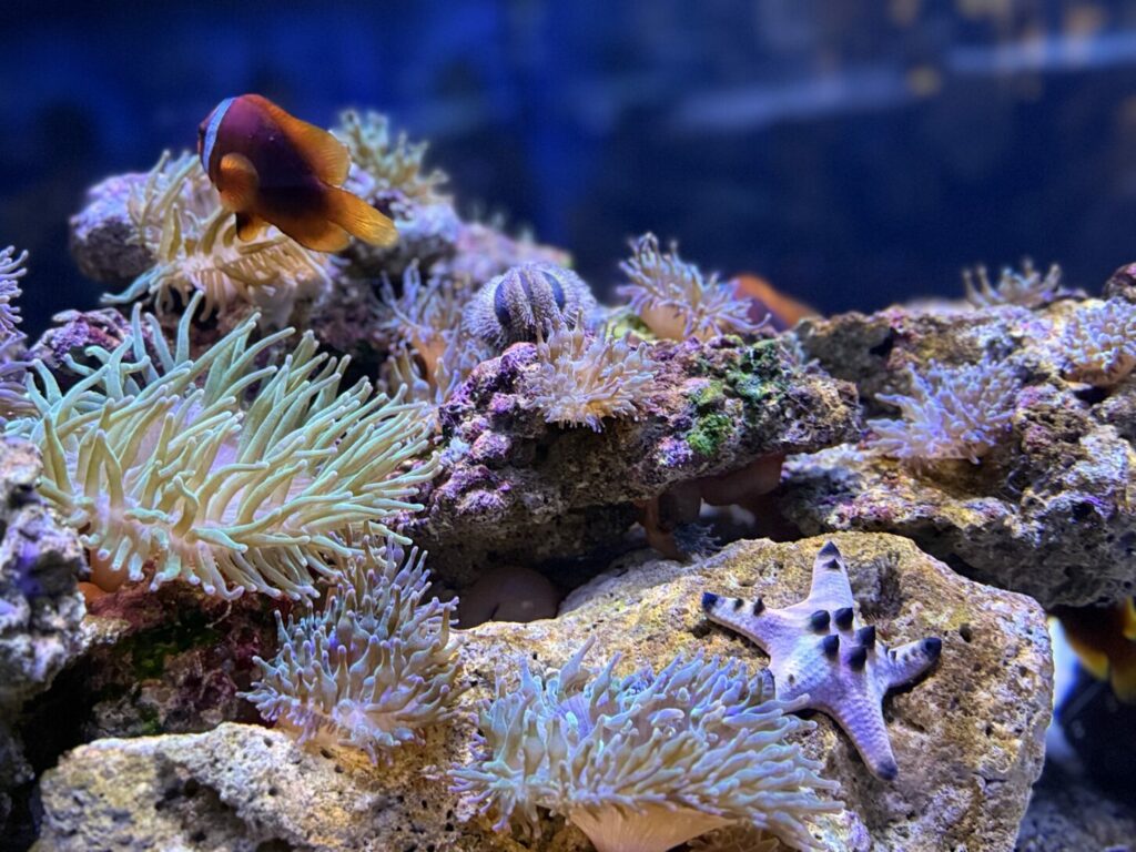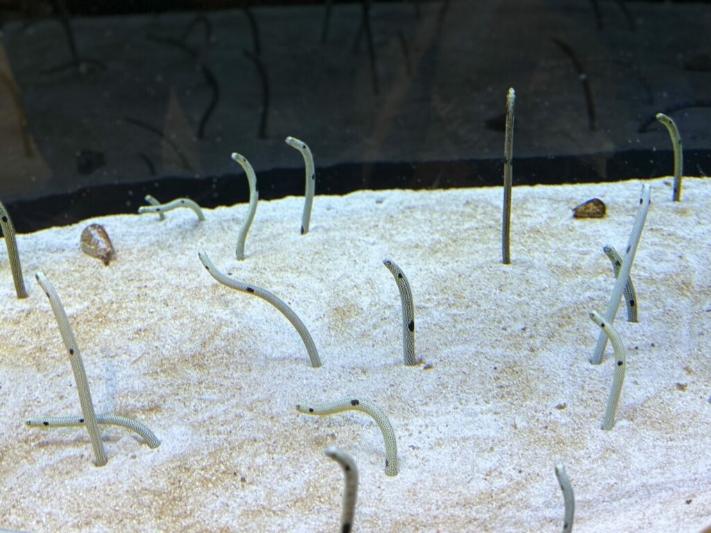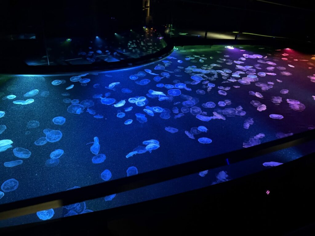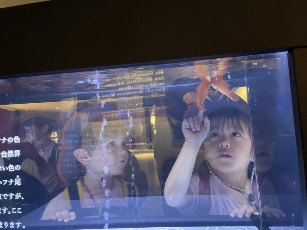 また、水族館でのワークショップにも参加し、実際に手を動かしてアート活動を行いました。コラージュ技法で魚を作る子や、カメのリストバンドを作る子もいて、それぞれの創造性を発揮して思い出に残る作品を完成させました。その後、サメ、アザラシ、金魚なども観察し、さらに興味と好奇心を広げました。