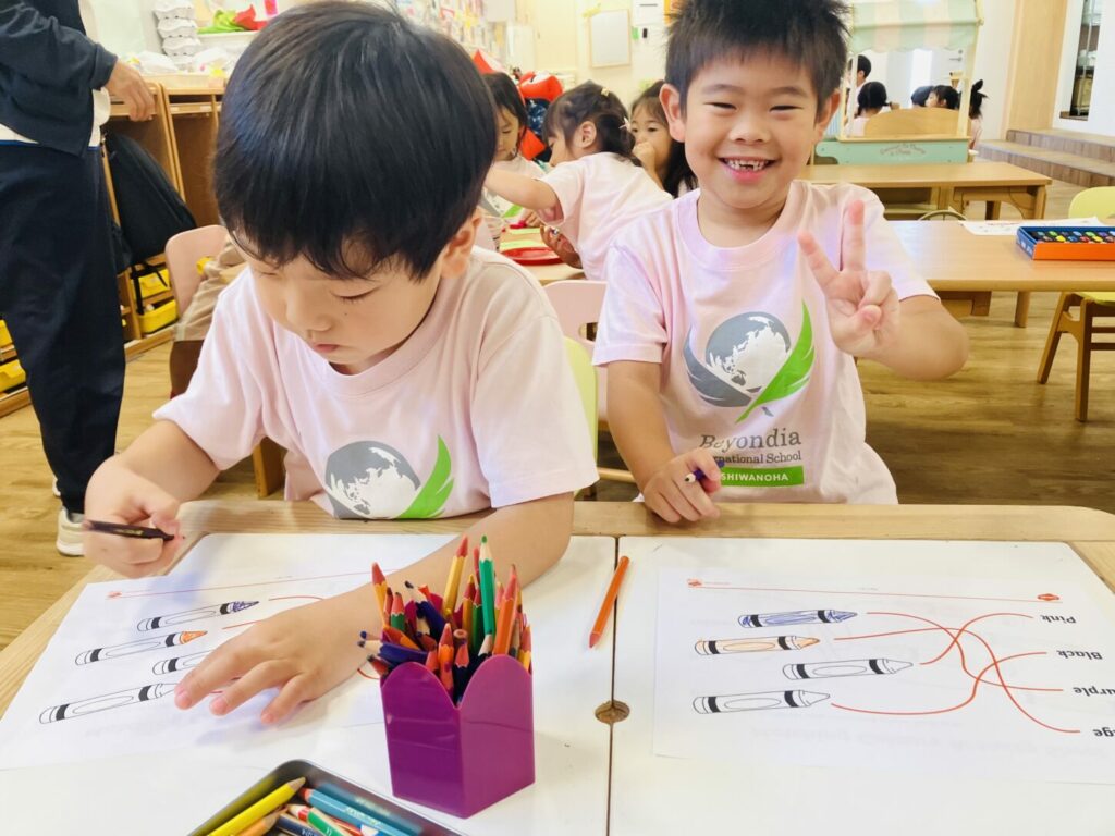 ビヨンディアインターナショナルスクール柏の葉では、K2/K3の子どもたちが現在、IB初等教育プログラム(PYP)の超教科的テーマの一つである「私たちはどのように自分を表現するか」を探究しています。この探究の一環として、子どもたちは芸術の最も基本的な要素のひとつ「色」から学びを始めました。