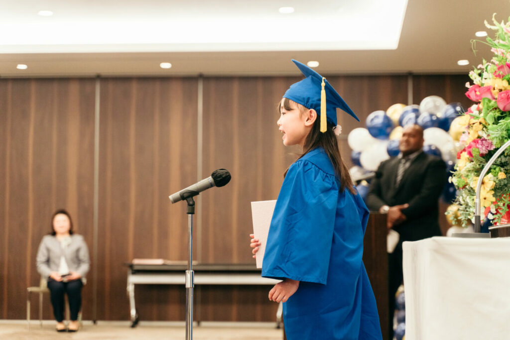 Ceremonyでは卒園証書の受け取り、そして英語でのスピーチも行いました。