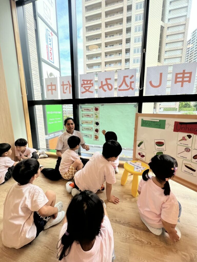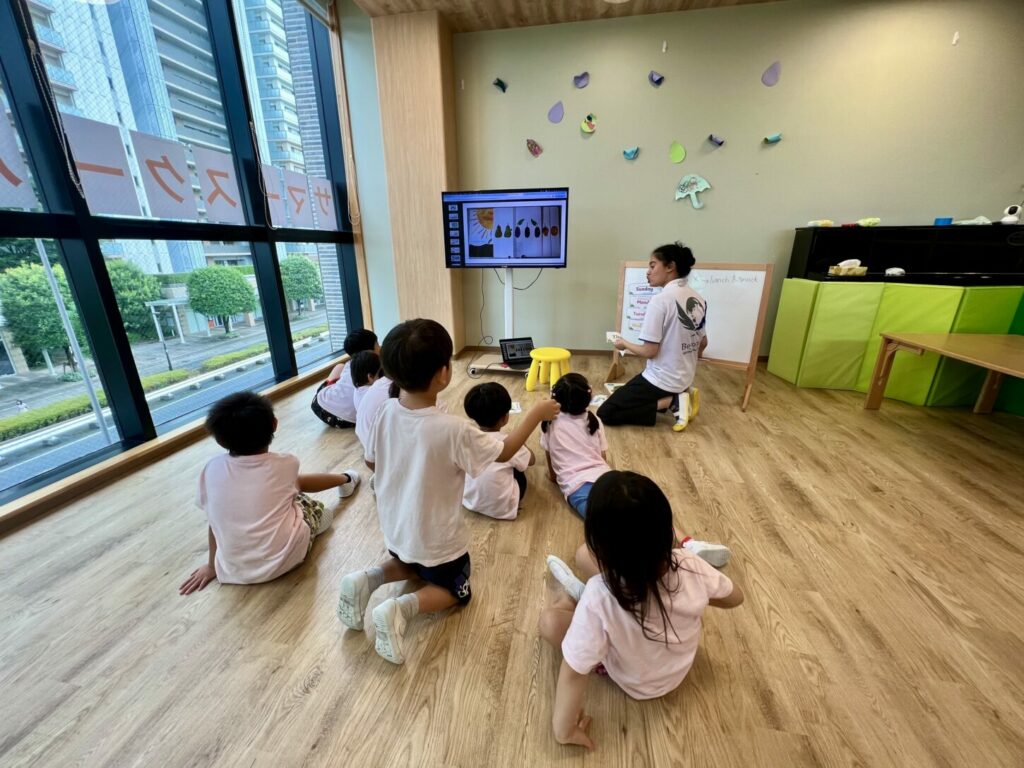 To extend the learning, we visited Tokyu Store in Lalaport to explore the types of leaves available in real-life markets. The children were excited to see various edible leaves and compare them to what they had learned in class. We also explored Japanese foods such as Sakuramochi, where some children noted that the leaf is eaten, and Kashiwamochi, where most said the leaf is not eaten. The discussion extended to matcha, derived from tea leaves, with many children sharing that they enjoy matcha-flavored ice cream. Finally, the class compared edible leaves to grass, realizing that while people usually don’t eat grass, animals like elephants and buffalo do.