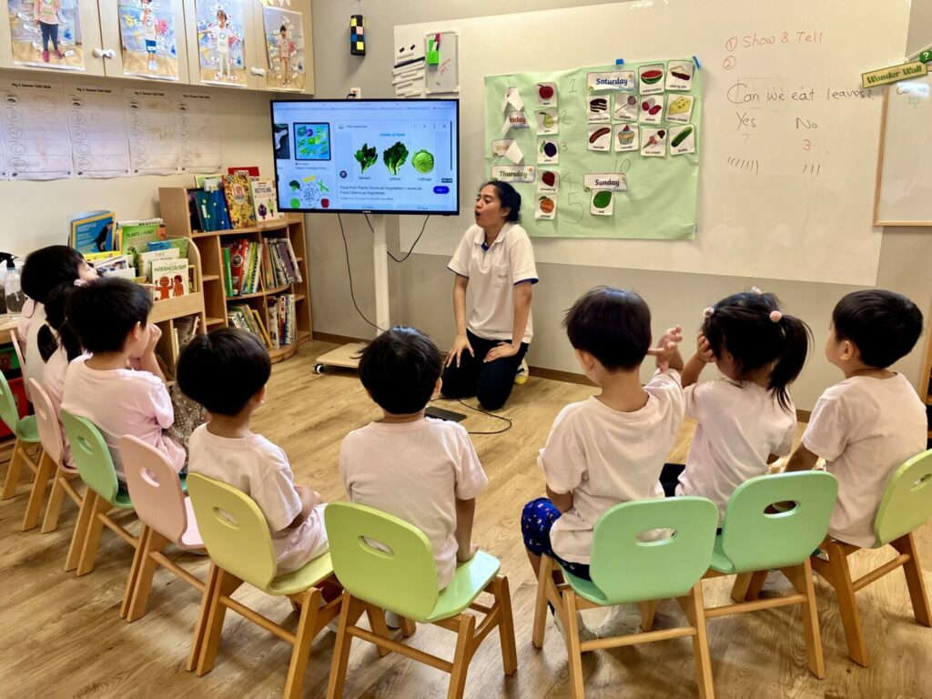 The most exciting moment came when the caterpillar ate a leaf. One child exclaimed, “We don’t eat leaves!” while another argued, “Yes, we can eat leaves!” This sparked curiosity, and the question, “Can we eat leaves?” became the first entry on our new Wonder Wall—a space where children post questions they want to explore in future lessons.