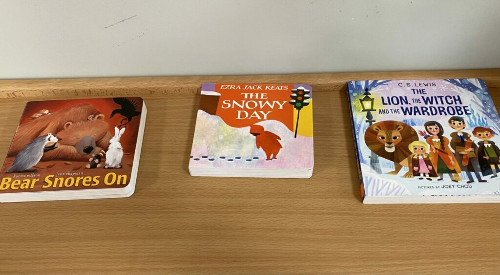 We had three story time events. All the kids sat down in the library and listened to the stories being read. Today, the three books were; The Bear Snores On, The Snowy Day, and The Lion, the Witch, and the Wardrobe. We chose these books are they were all linked to winter. The kids seemed to really enjoy them.
