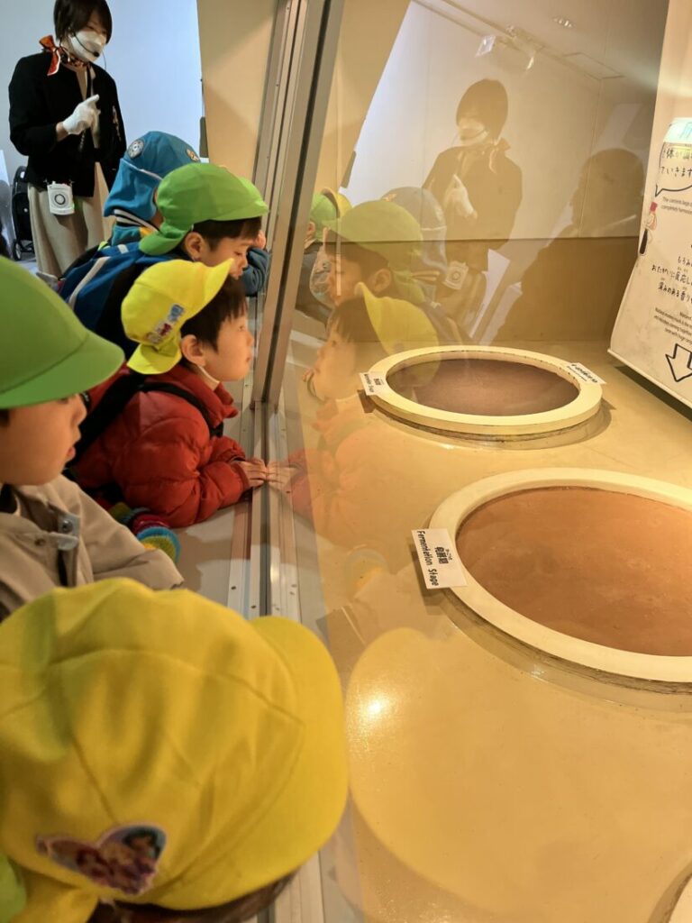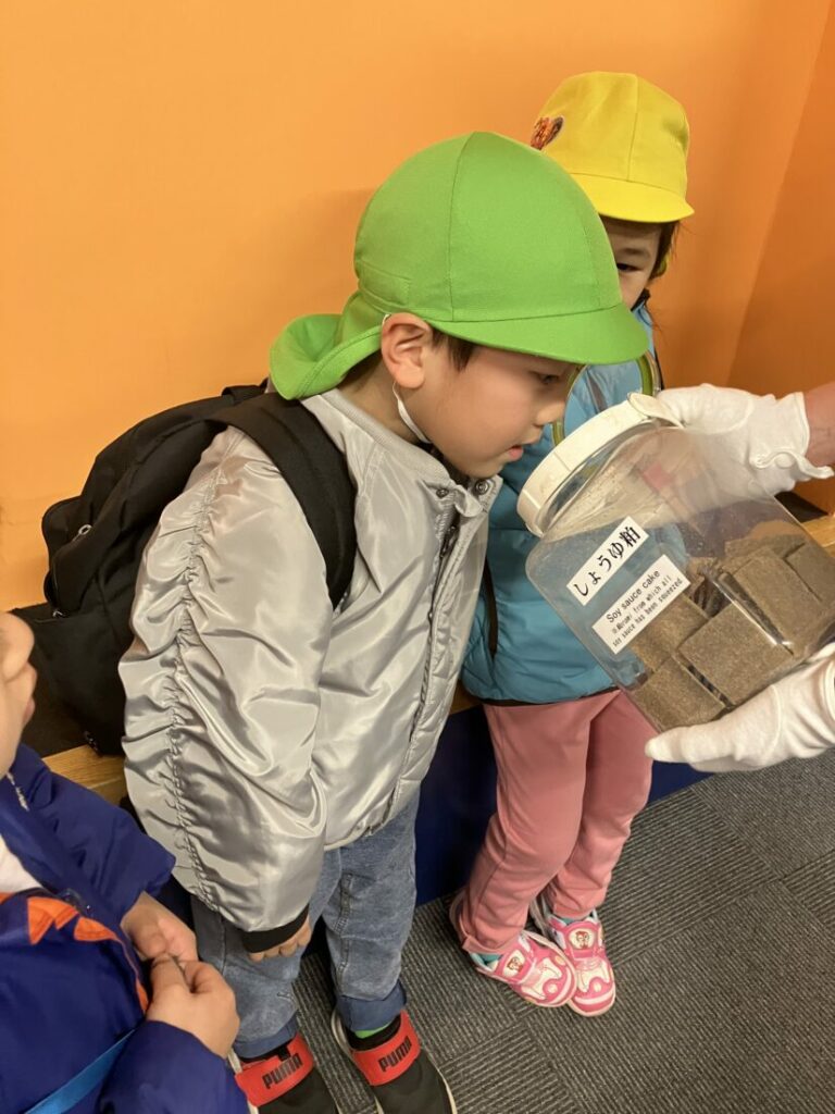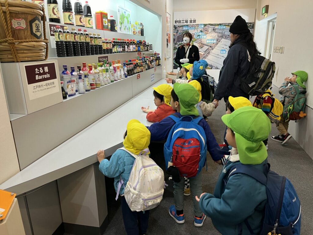 先日、Kinderクラスの子どもたちは、キッコーマンもの知りしょうゆ館へ遠足に行ってきました!事前に学んだ内容を生かして、実際に醤油がどのように作られているのか、工場での体験を通じて学びました。