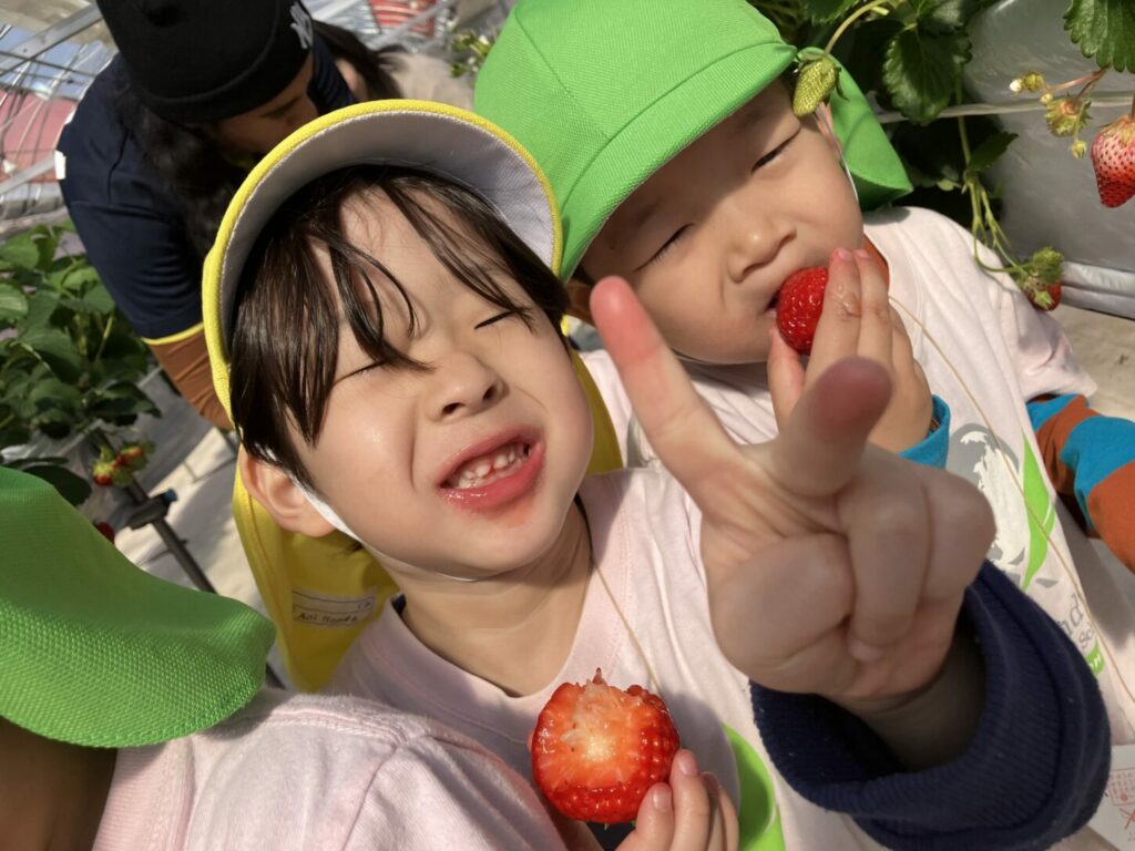 In October, the program begins with transplanting strawberry seedlings. Each month, children visit the greenhouse to help with pollination, measure sweetness, and experience the growth of the strawberries up close. By observing the power of nature and the work of living things, we nurture children’s curiosity and their desire to ask, “What’s happening?” and “I want to try it!”