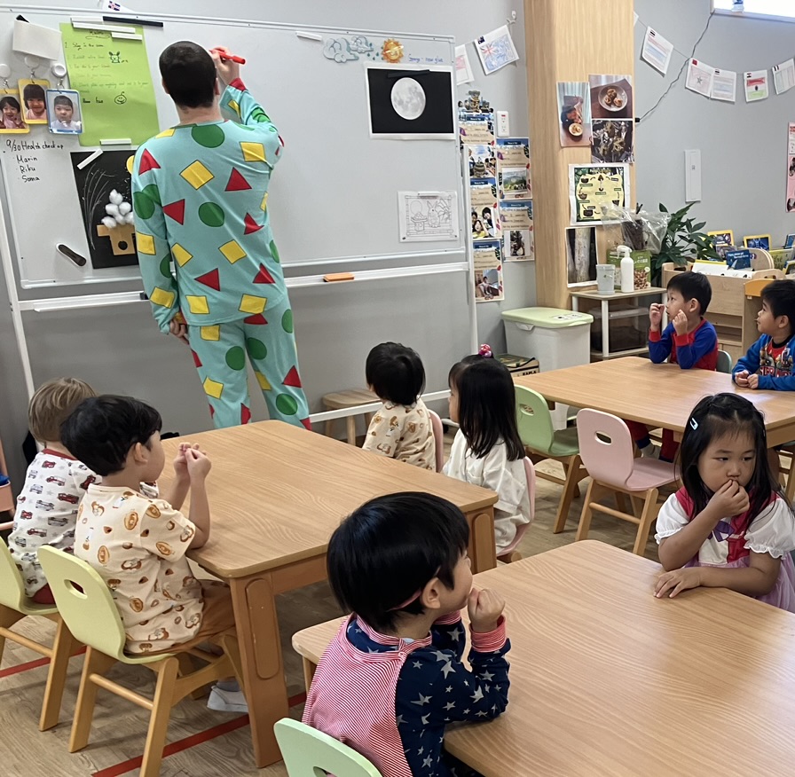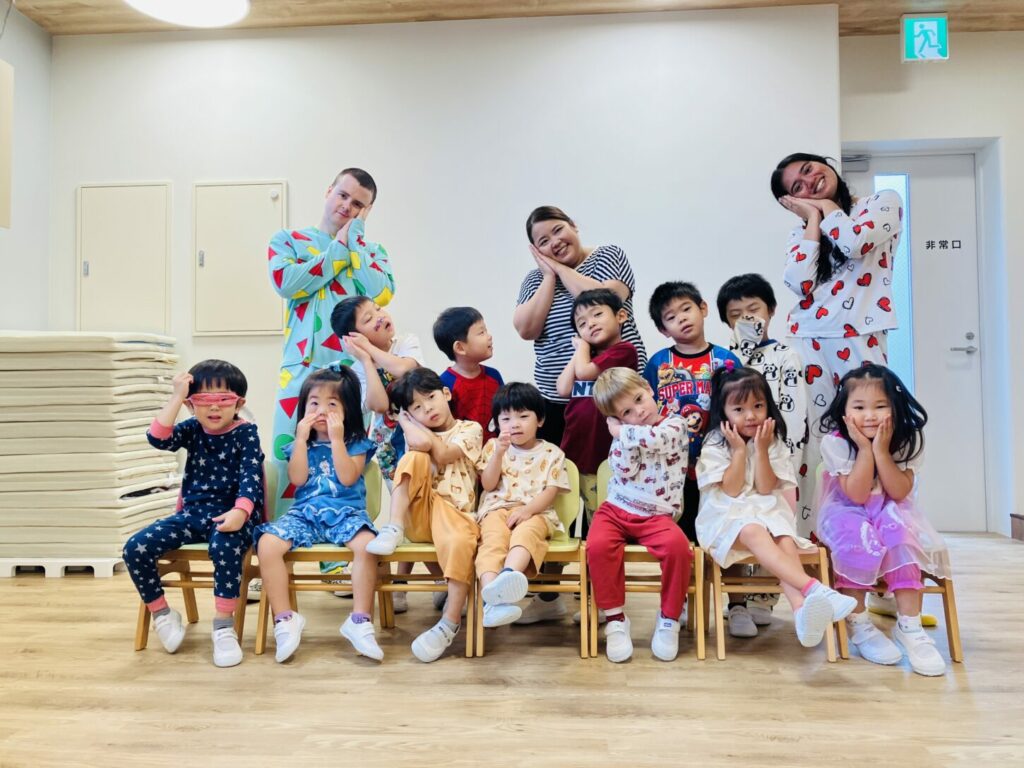 8月はSummer Fashion Dayで、スクールでバカンス気分の1日を過ごしました。今回はPajama Day。お気に入りのPajamaで子どもたちが登園してきました。朝の挨拶は “Good Night”です。