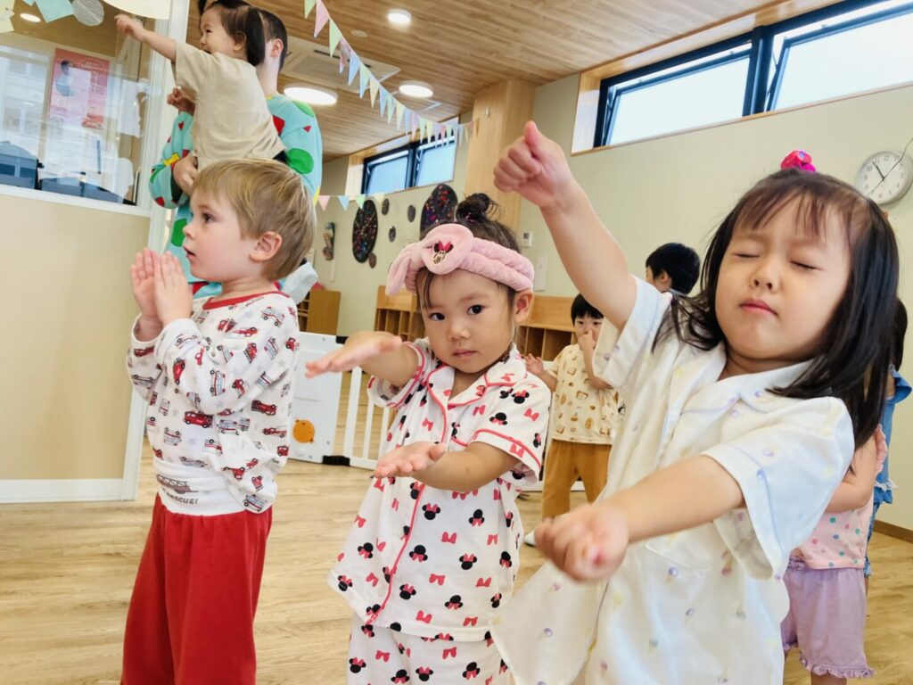 今後も様々なテーマでお楽しみな日を過ごしていきたいと思っています。ピンクとイエローのbeyondia Tシャツを着ている子どもたちも素敵ですが、いつもと違った装いだとすごくしっかり見えたり幼く見えたり、普段は気づかないような一面も見ることができます。先にもお伝えしましたが、Pajamaでのお昼寝タイムはいつもの倍以上、かわいかったです。