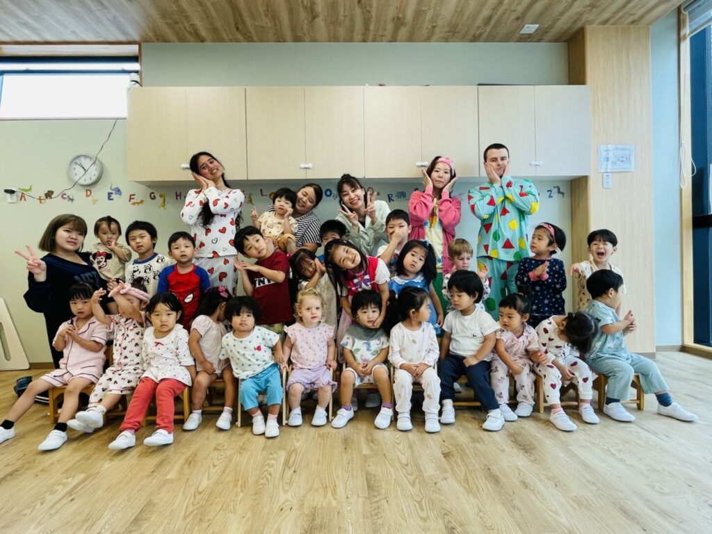 Pajamaですっかりリラックスしてのんびりモードと思いきや、大好きなスーパーヒーローやキャラクター、お姫様のようなヒラヒラドレス、アイマスクやブランケット、子どもたちはPajamaでもいつも通り元気で、お友だちと遊んだり大きな声でレッスンに参加したりしていました。