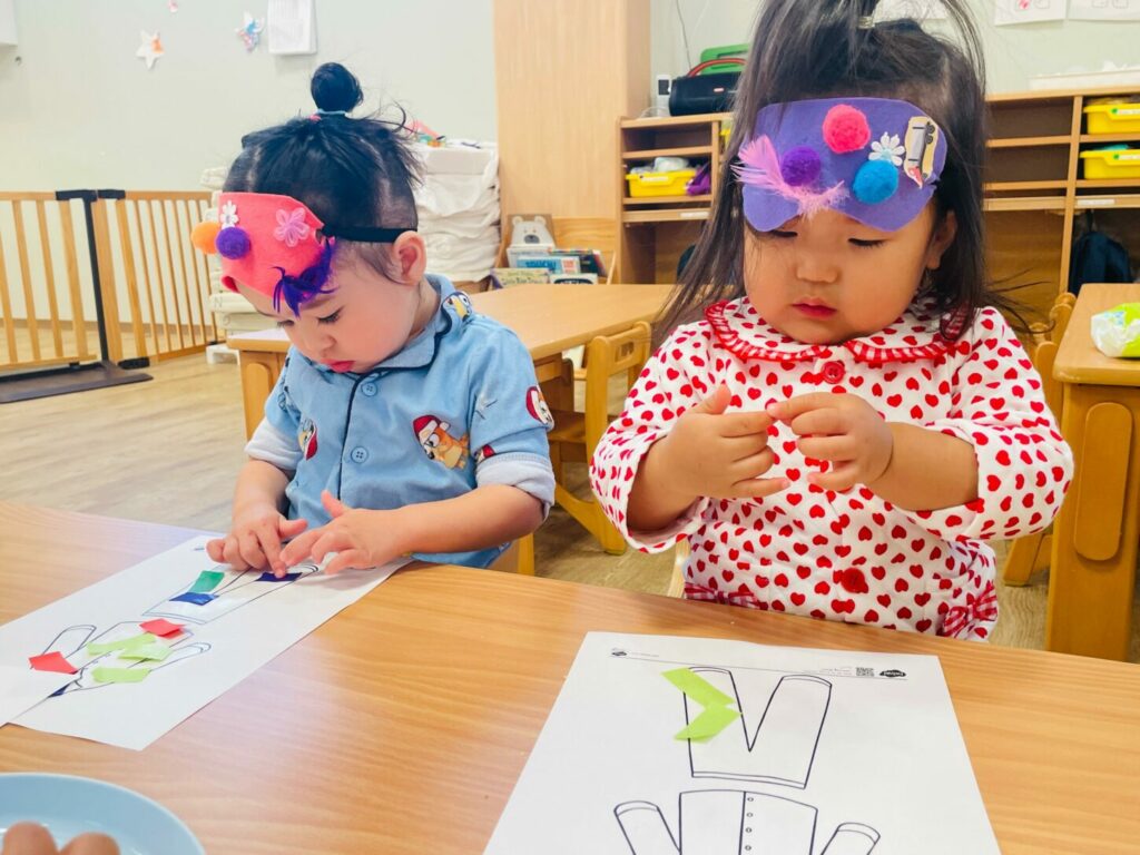 ナーサリーとプリクラスでは、子どもたちが自分だけのアイマスクを作り、一日中楽しんで身に着けました。マスクを手にした瞬間、みんなの顔が喜びで輝き、自分の作ったものを身につけることに誇りと楽しさを感じている様子でした。