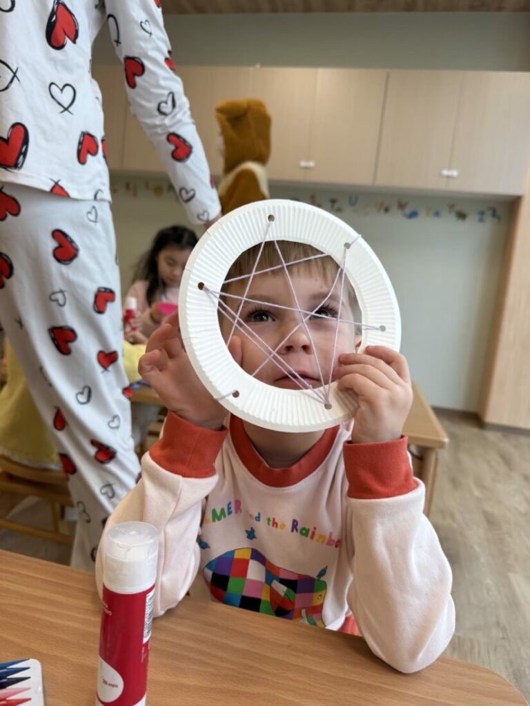On the Nursery and Pre side, the children made their own sleeping masks and enjoyed wearing them throughout the day. As soon as they received their masks, their faces lit up with joy. Everyone seemed so proud and happy to wear something they had made themselves.