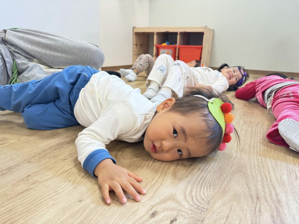 After snack time, we had a lively play session. The children enjoyed playing with balloons, pushing and riding toy trains, and even had a fun dance party. The song Sleeping Bunnies was a perfect choice for dancing, and all the children looked absolutely adorable.