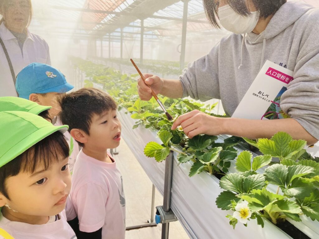 In December, the Kinder class had the wonderful opportunity to revisit the strawberry field. Bundled up in their winter coats, the children excitedly made their way to the greenhouses. Upon arrival, they were amazed to see how much the plants had grown in just one month. Some plants even had strawberries starting to grow, which filled the children with excitement and curiosity.