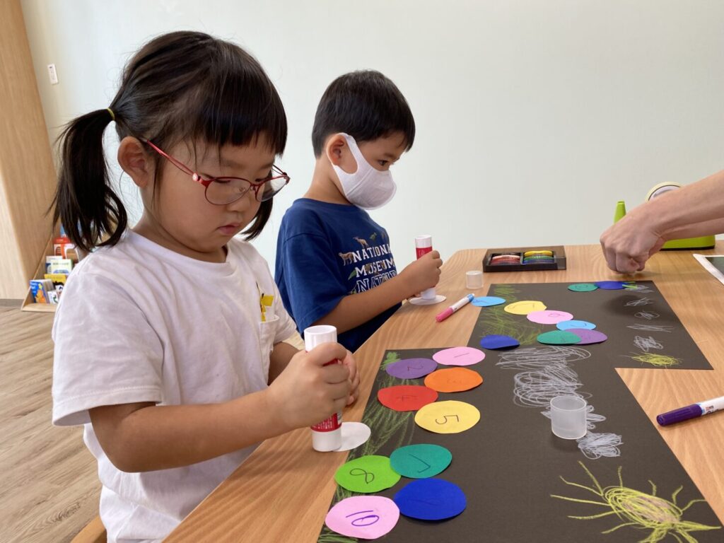 読み聞かせの後は、数字や色、形を