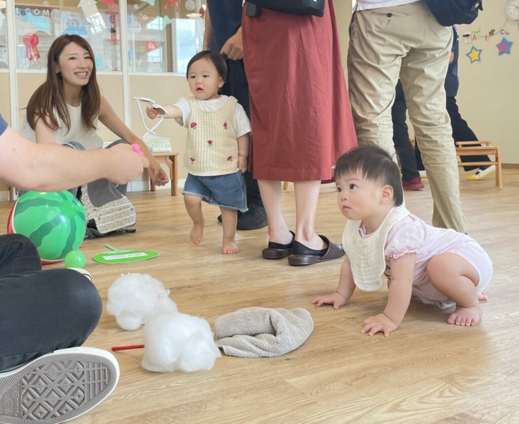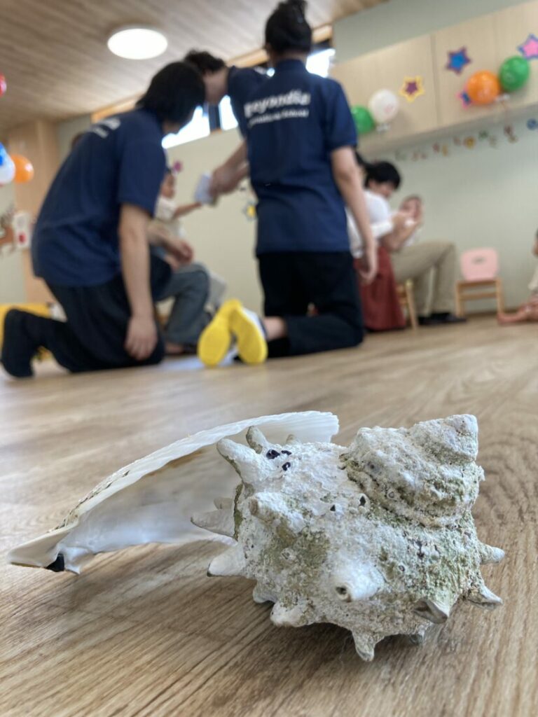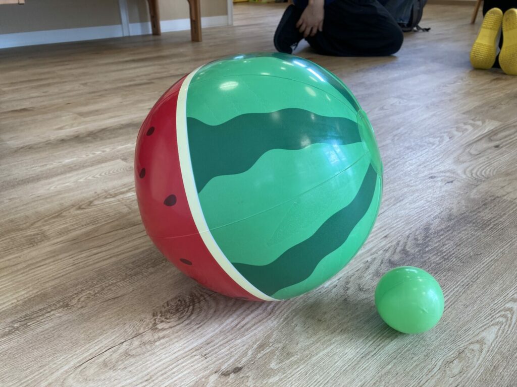 その後、スイカ(ボールとして使用)、貝殻、わたあめ(綿から作られたもの)など、夏に見られる様々な物を紹介しました。