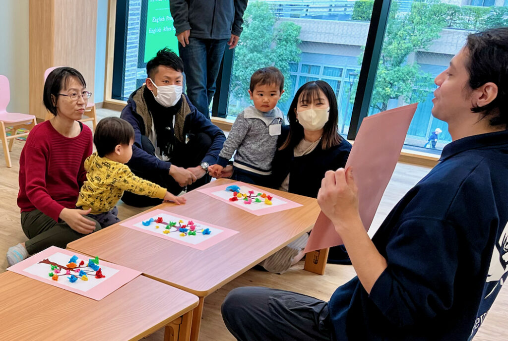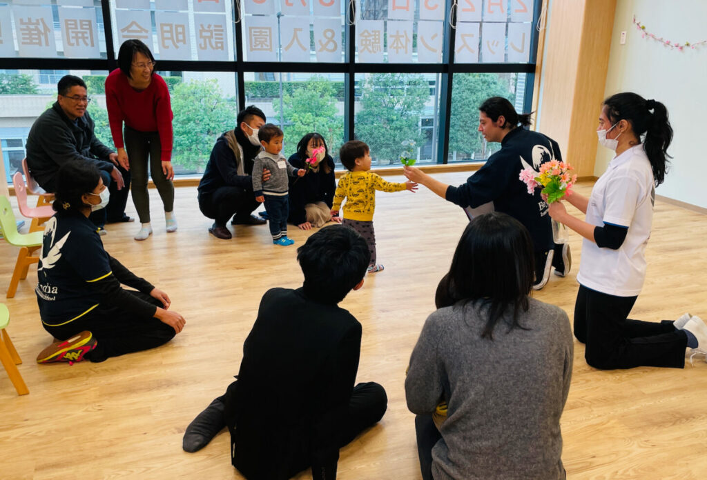 We enjoyed the parachute with the petals on it as a fun learning experience. Then, we read a book. We learned some vocabulary, such as ‘Tap’, ‘Clap’, and ‘Jiggle’. By reading that book, we let you expose yourselves to some knowledge about the changes of the environment from the winter to the spring, so when you witness them in the environment, you can relate today’s learning to the real world. Apart from that, in relation to the theme, we decorated Cherry blossom trees, which you will see in your surroundings soon.