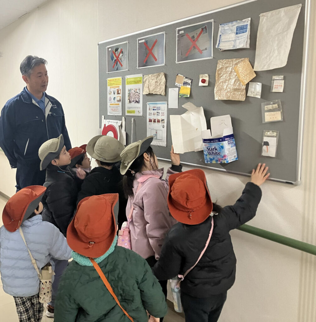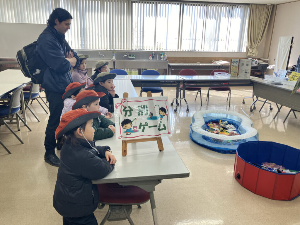 見学後には、リサイクルプラザの方々の協力のもと、子どもたちは分別体験のアクティビティに参加しました。「釣り」ゲームを通してアイテムを取り出し、どのように分別するかを考えながら取り組みました。この活動を通して、思考力や協力する力を育み、自分たちの行動が環境を守ることにつながることを学びました。貴重な学びの機会を提供してくださった皆さまに感謝いたします。