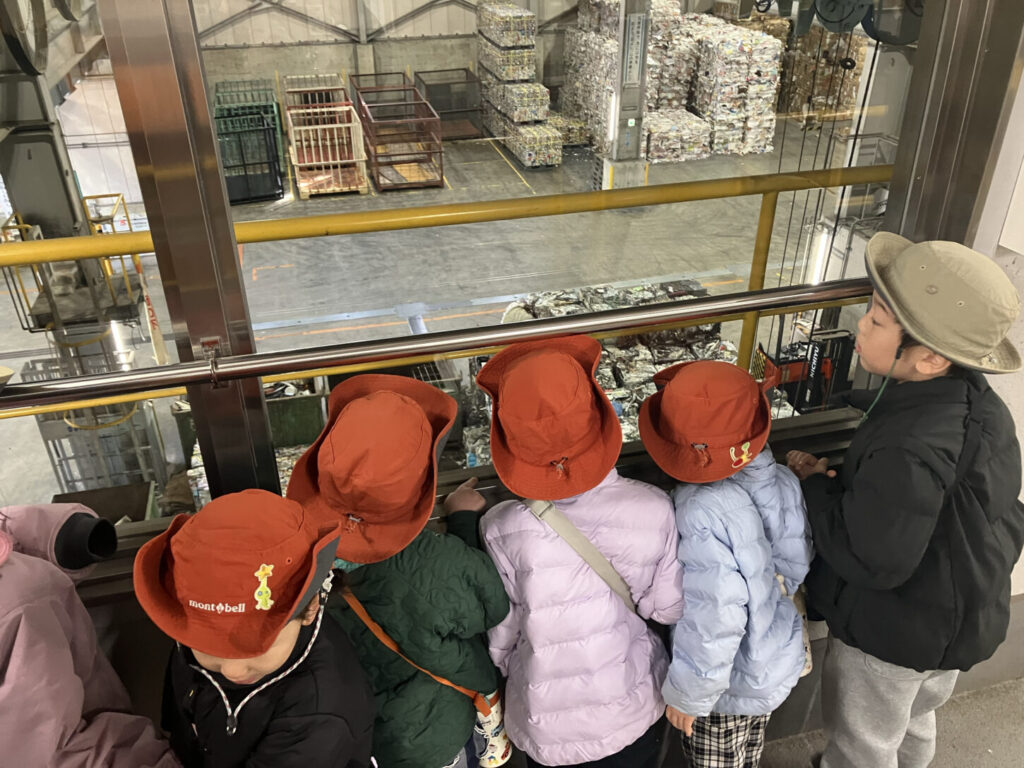 到着すると、スタッフの方が温かく迎えてくださり、見学ツアーが始まりました。子どもたちは、回収されたゴミがどのように分別され、処理されているのかを実際に見ることができました。また、大きな機械だけでなく、スタッフの方々が一つひとつの物を再利用できるよう丁寧に準備している様子にも、とても驚いていました。この体験を通して、子どもたちは資源をリサイクルすることや、環境を守るために人々が協力していることへの理解を深めることができました。