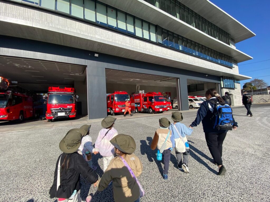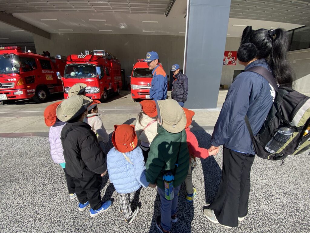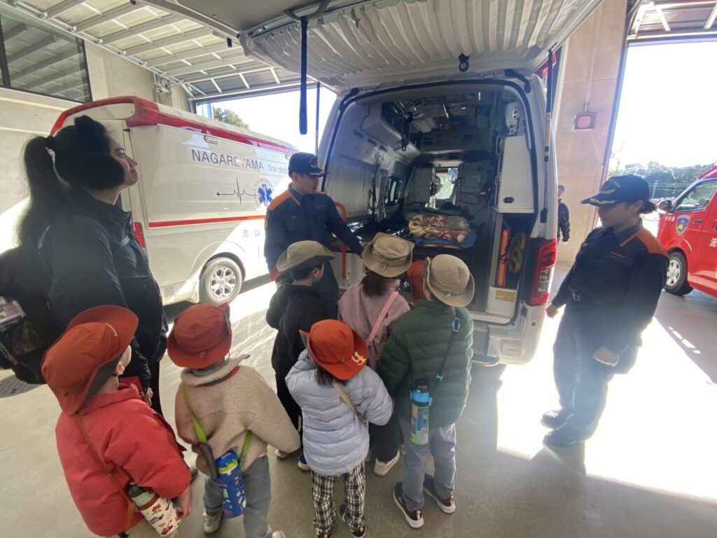 Recently, our kinder class visited Nagareyama Central Fire Station. It was a wonderful opportunity to learn through real experiences and to see how firefighters and paramedics help our community. We traveled by train and then by bus to reach the fire station. The children were excited and did a great job staying together and listening carefully during the trip.